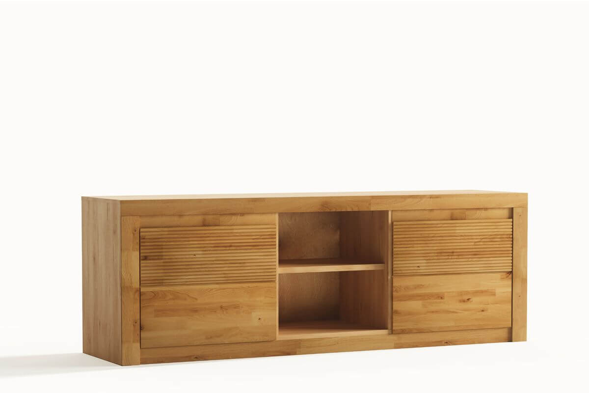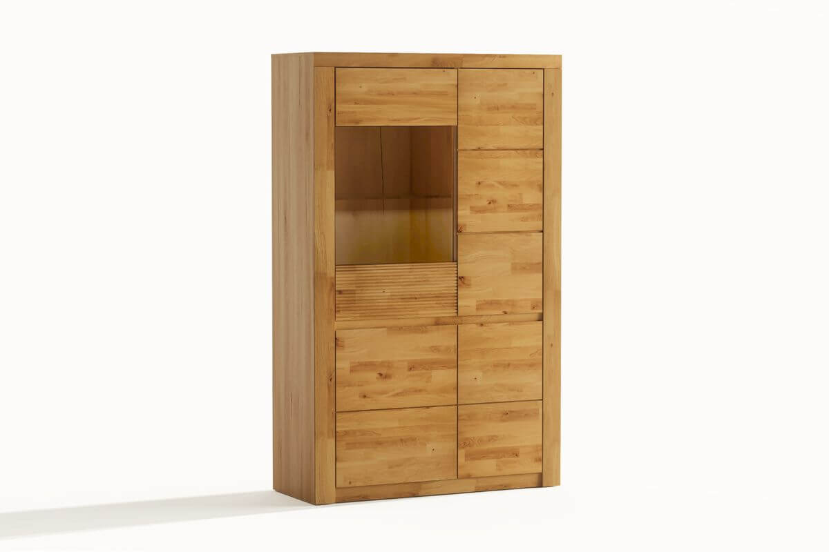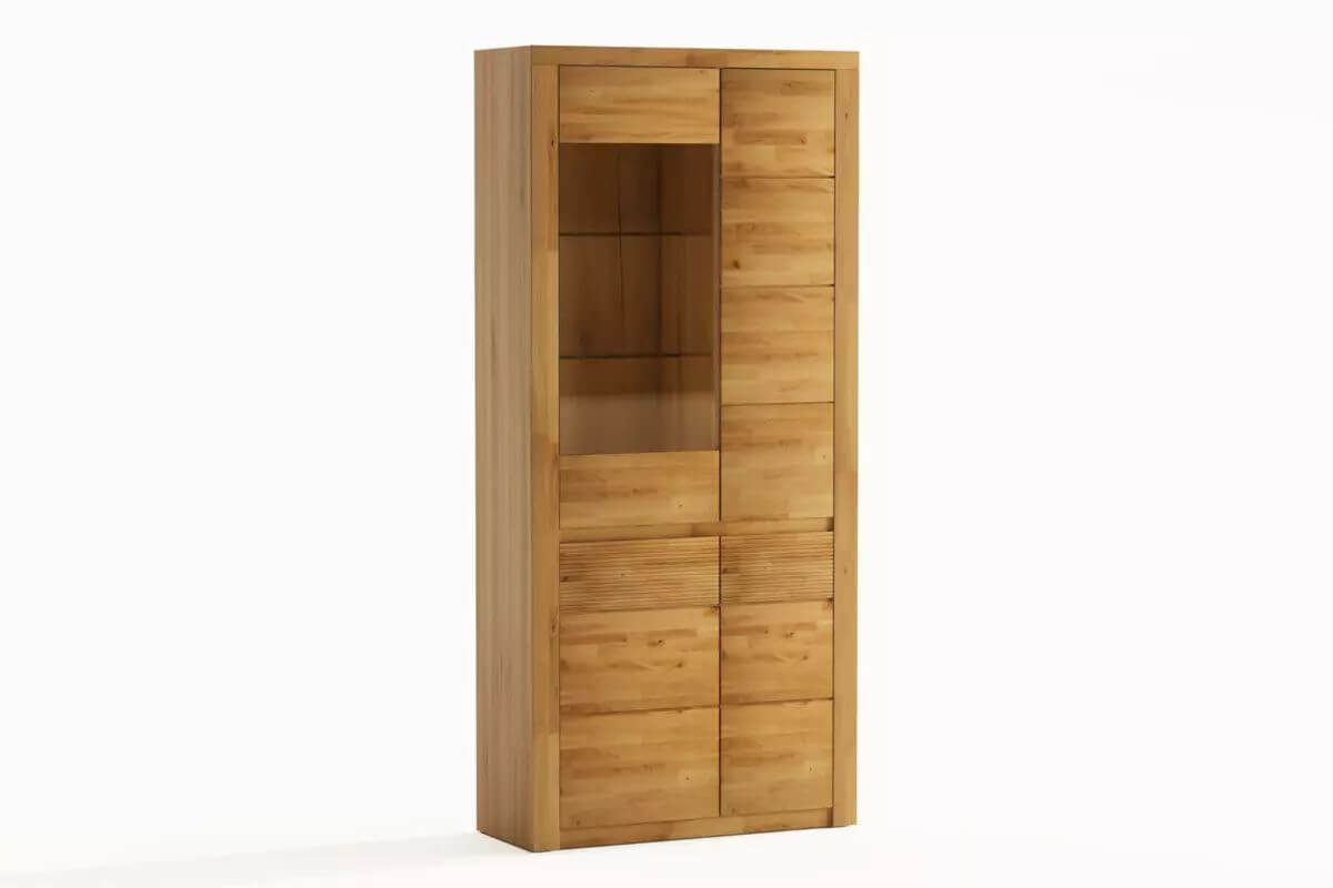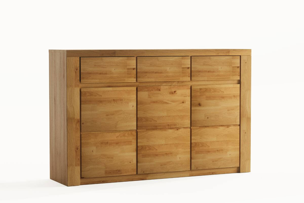 Fronty mebli z kolekcji BRUNO wykonane są w 100% z naturalnego dębu, olejowanego, dzięki czemu drewno uwydatnia swój piękny, naturalny złocisty kolor. Uchwyty do tej kolekcji frezowane są w naturalnym drewnie.